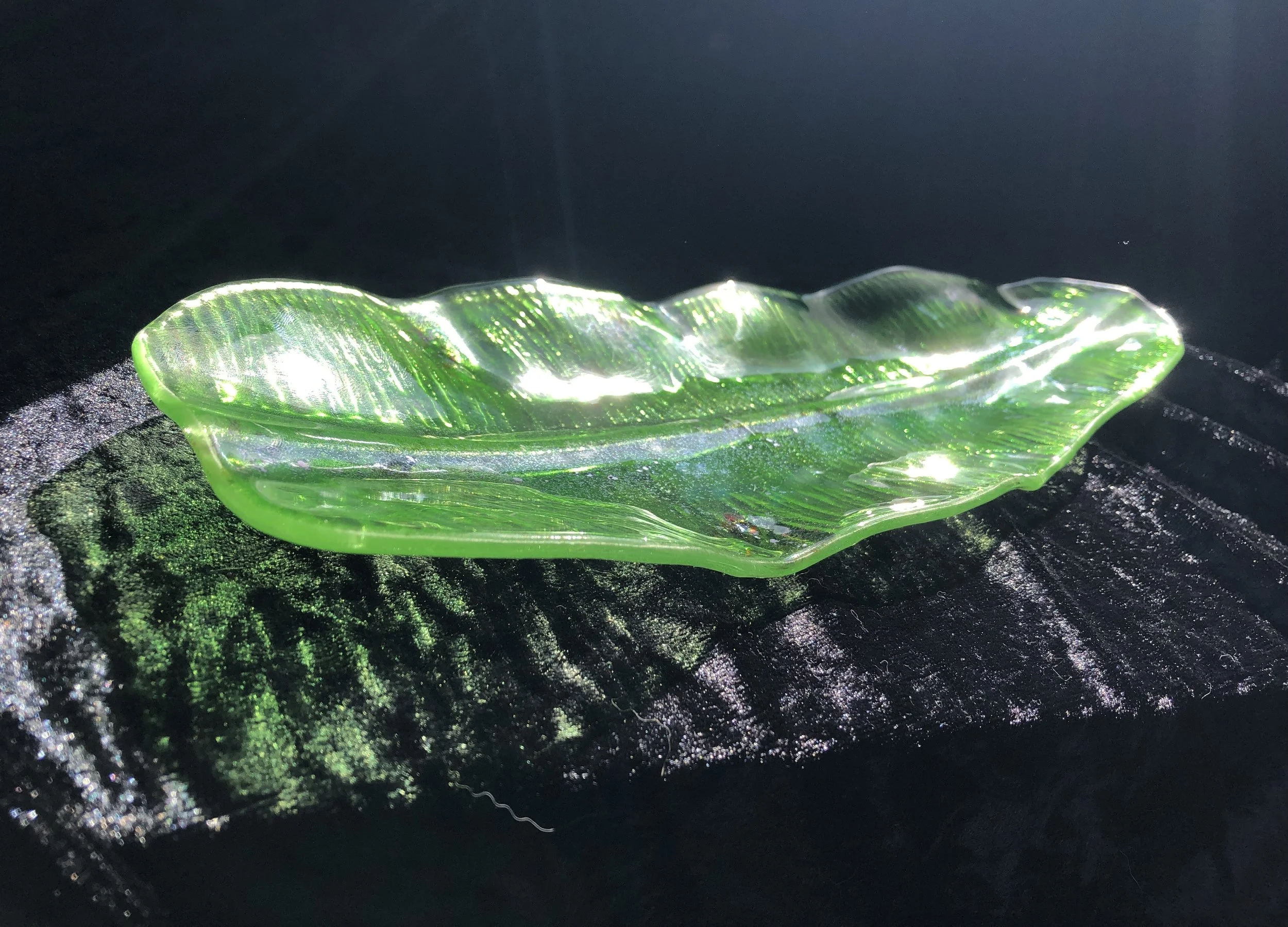 Hier sehen Sie meine erste selbst hergestellte Glasschale, ein Bananenblatt.