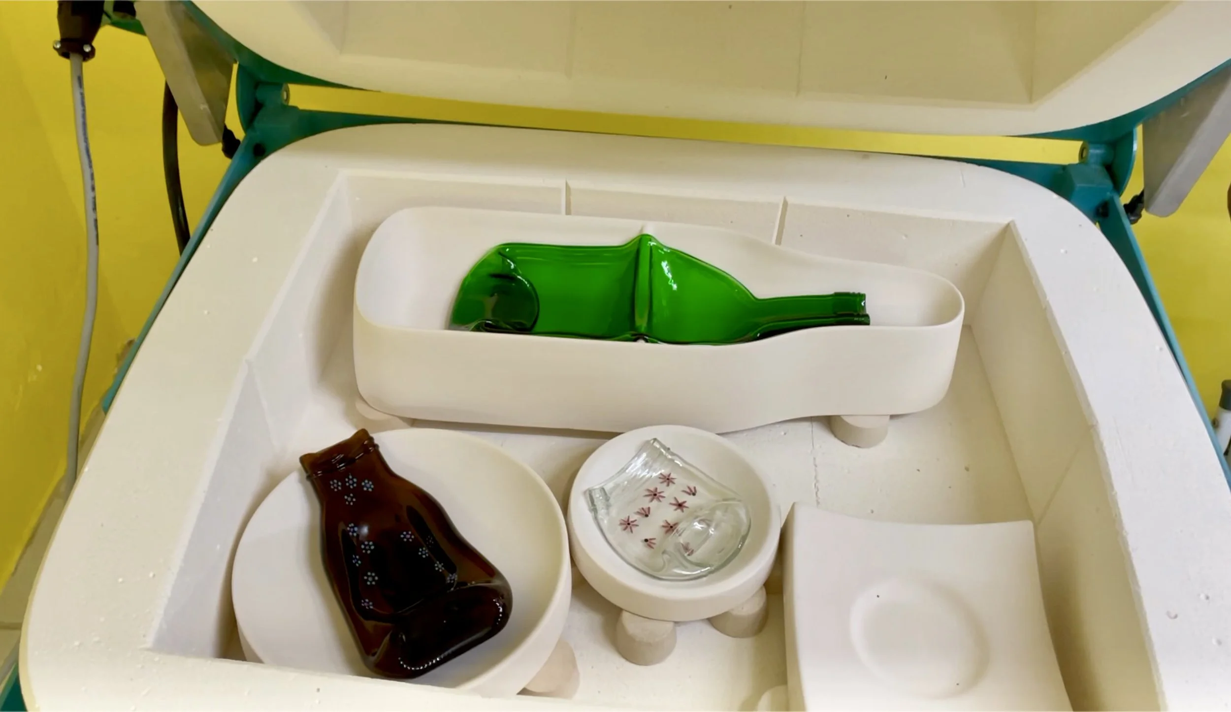 Nach dem Waschen legte man mich in einen speziellen Brennofen und bei 750 Grad verschmolz ich zu meiner neuen Form.